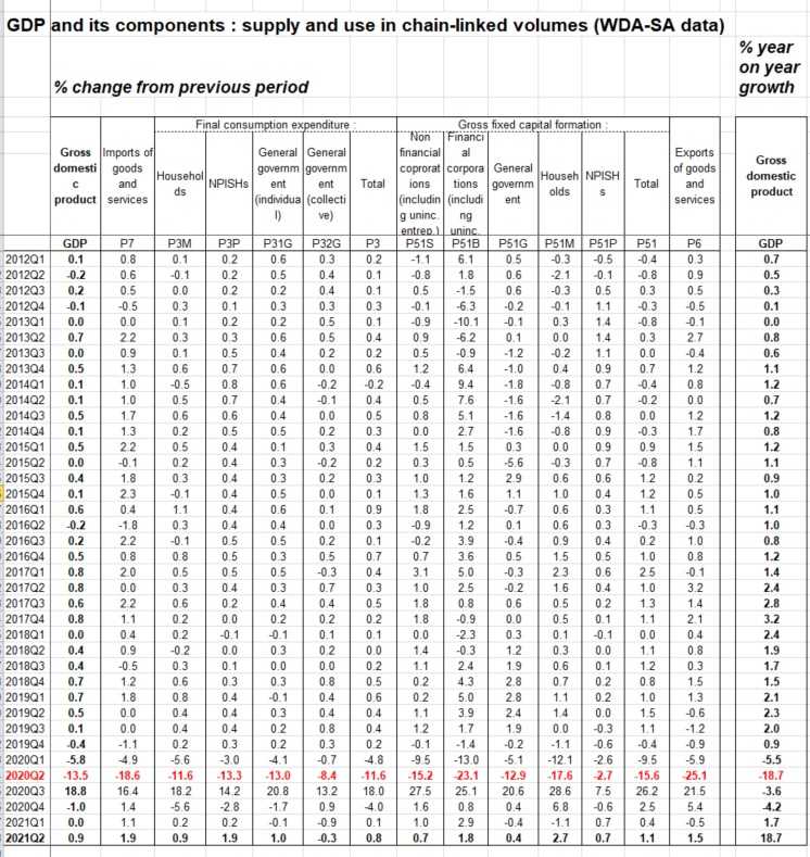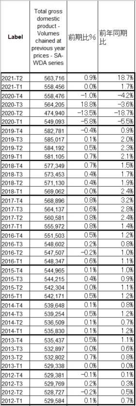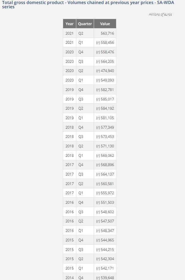 <実質四半期GDP推移の抜粋:単位=百万€>