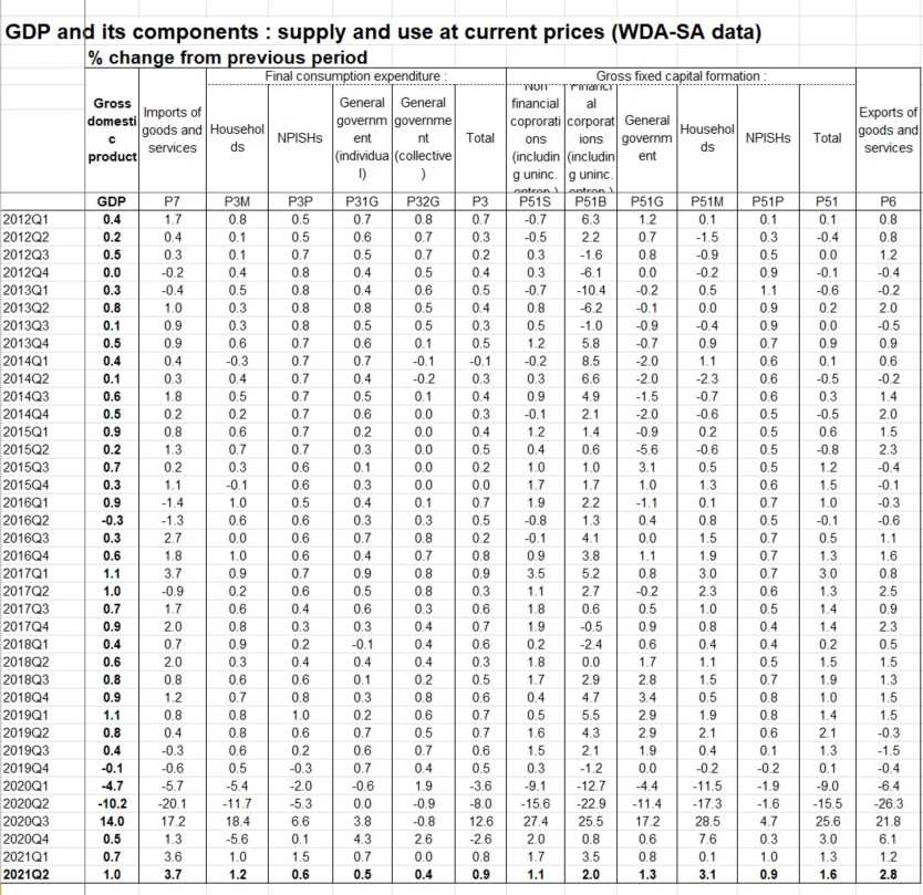 <実質GDPの構成の推移:季節調整済みの実額伸び率%