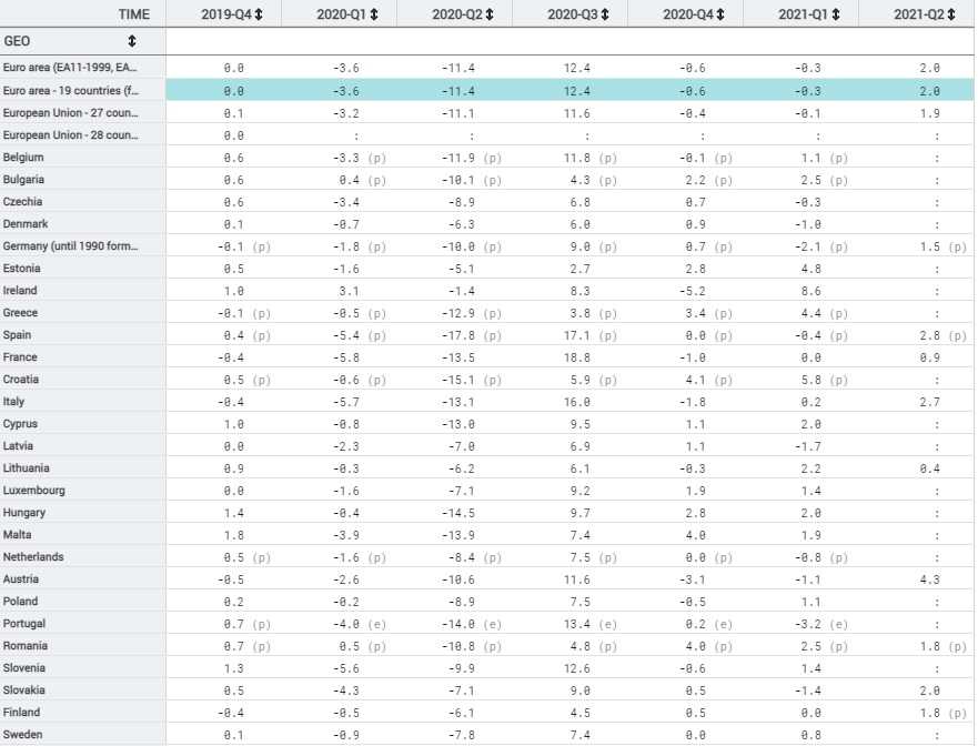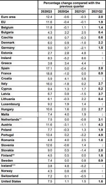 EUROSTAT によれば2021年Q2(第2四半期)における