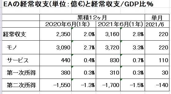 2021年6月度 220億€で、前月比 140億€増加しており、