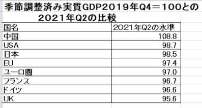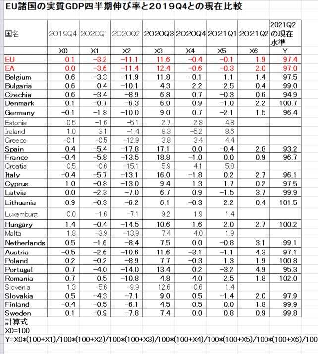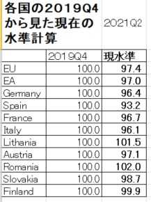 2021年Q2の2019年Q4からの 「EU加盟国の回復水準」
