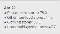 衣料品店舗、家庭用品店舗は前月比▲2.0%で、百貨店は0.2%増加。