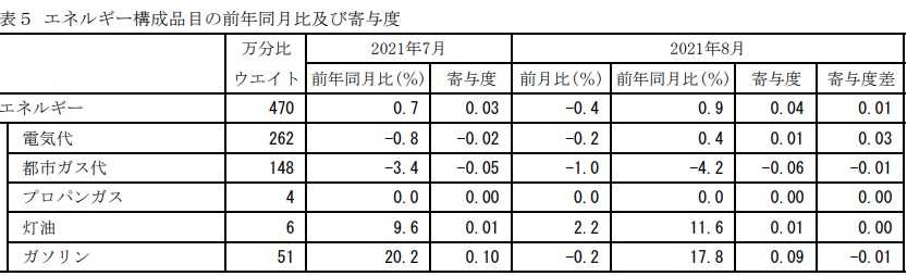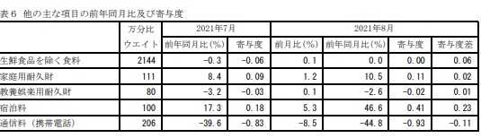 そのため、東京都区部8月分の消費者物価指数では、