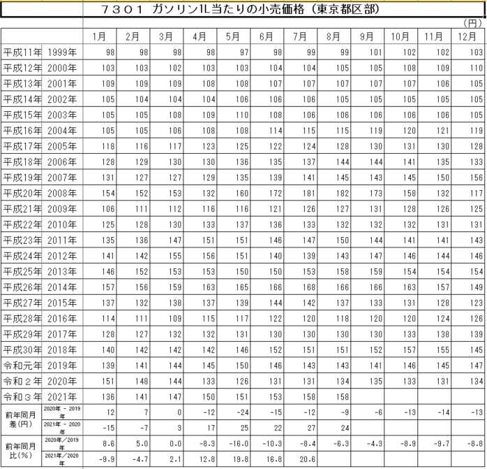 2021年8月158円/ℓ(前月と同じ)