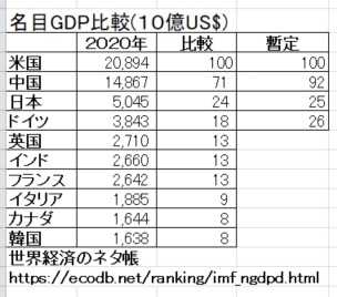 名目GDPランキングを並べてみる(暫定は実質ベース)。