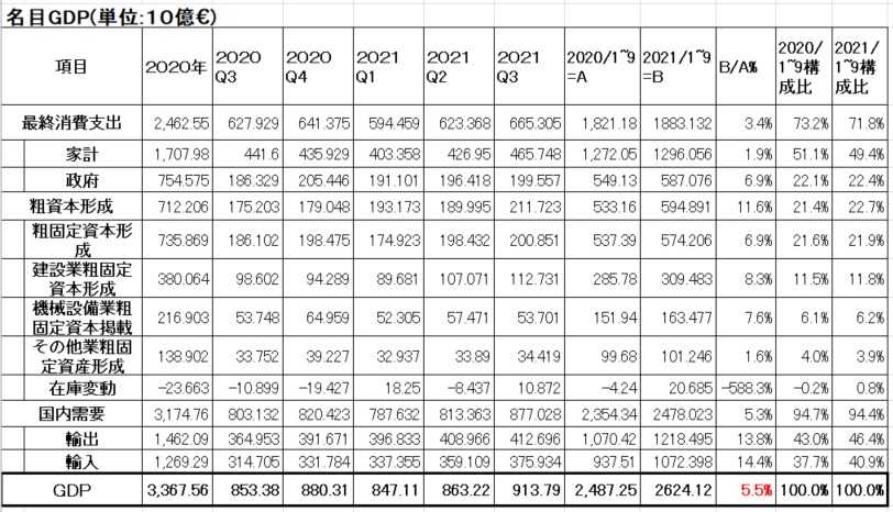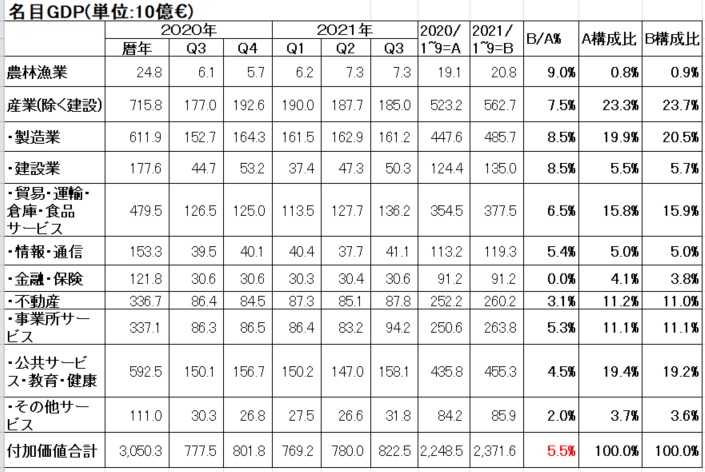3.2021年1∼9月期名目GDPを「産業別」に見ると