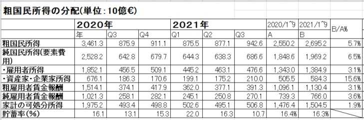 4.2021年1∼9月期の粗国民所得と貯蓄率