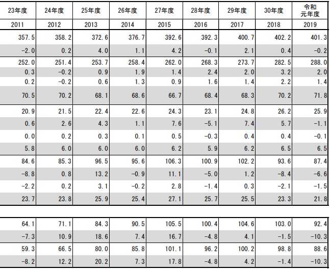 伸びでは、ウエートが最も低い農林漁業が9.0%、製造業