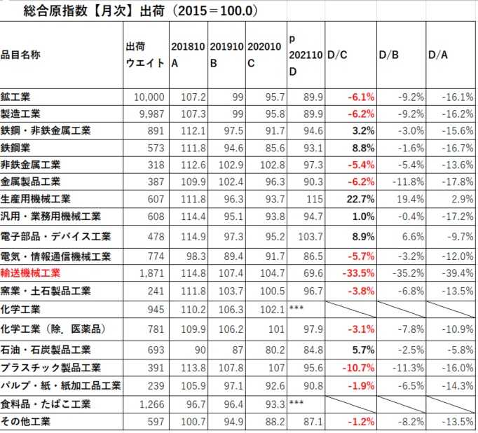 ​  マイナスが大きいのが 「輸送機械工業」 が「▲33.5%」、