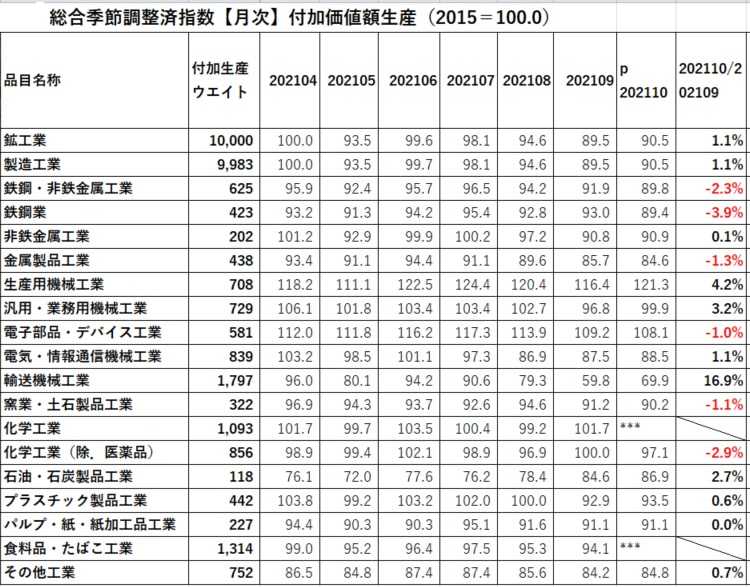 「輸送機械工業」が「+16.9%」と高い?が、これは世界的な