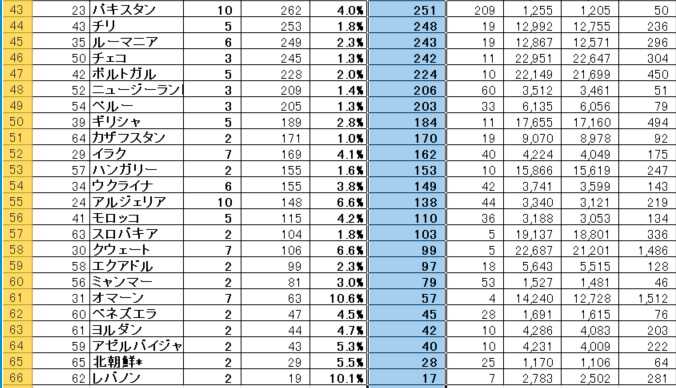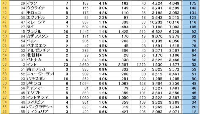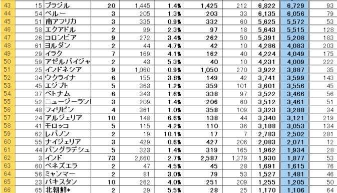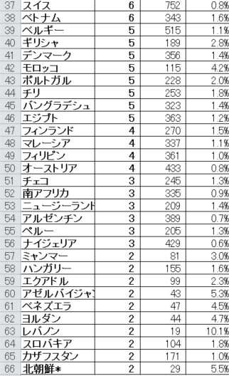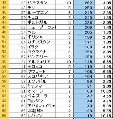 パキスタン(4.0%)、ウクライナ(3.8%)などの国々