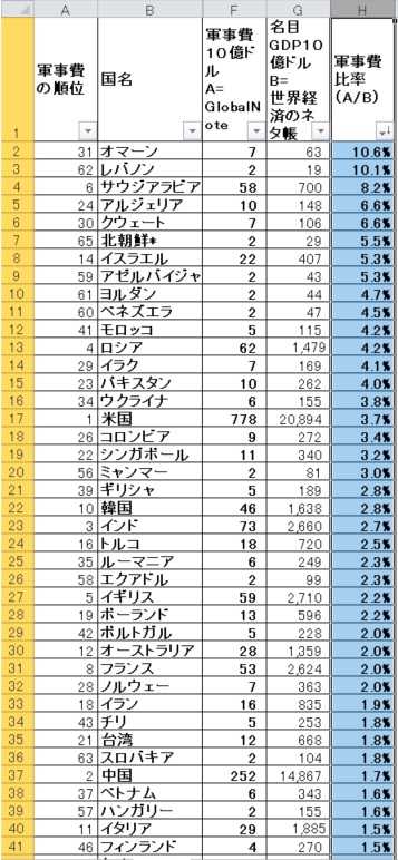 2.北朝鮮(5.5%)や周辺に紛争を抱えたレバノン(10.1%)、