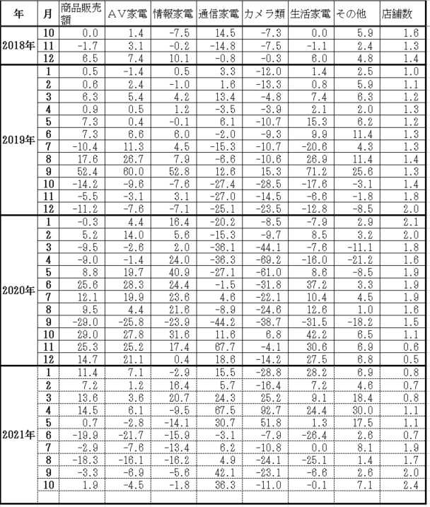 最近は、情報家電も復活しつつあるが、カメラ類は人流低下で