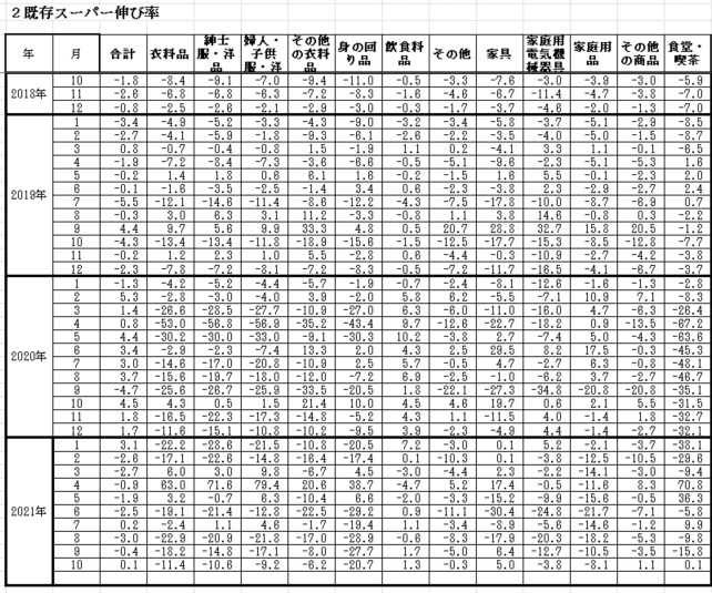 ーパーは2019年には全般的にマイナス気味が続いており、