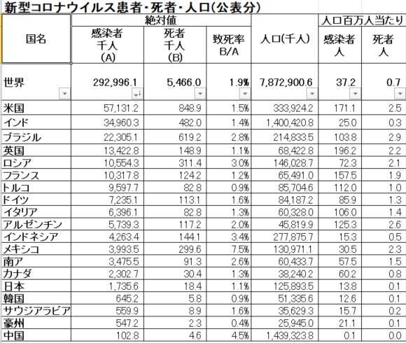 死者の絶対数は人種の坩堝と言われる流入人口が多い米国が