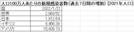 <人口百万人当たり新規感染者数(過去7日間の増加)>