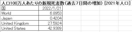 <人口百万人当たり過去7日間の新規死者数>