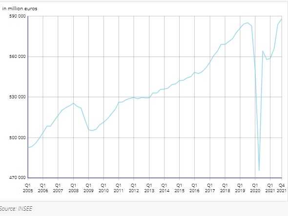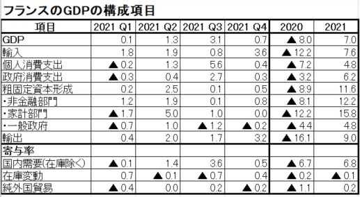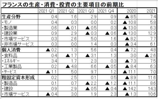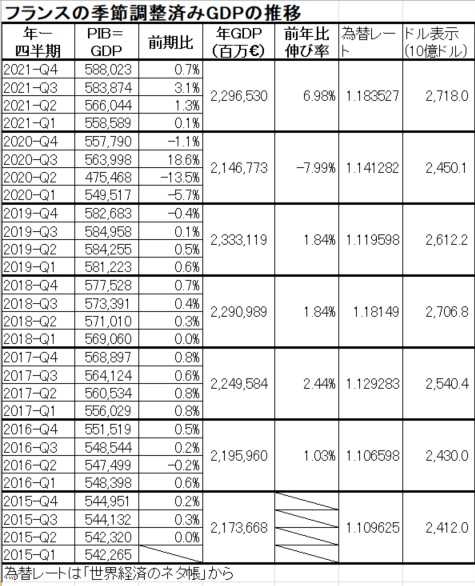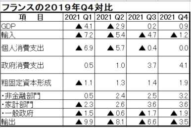 ​フランスの2021暦年GDPと、Q4までの四半期別GDP