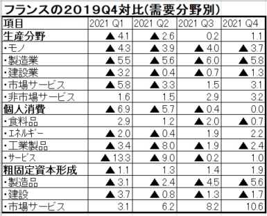 6.フランスのコロナ前2019年Q4との対比(需要分野別)