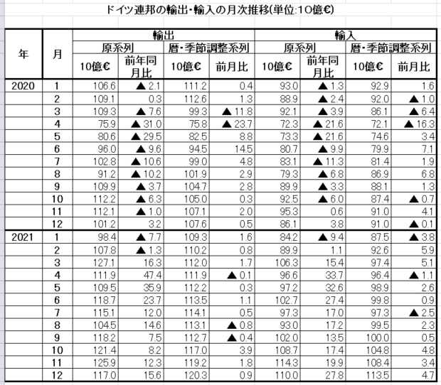 原系列で見ると~ドイツのモノの輸出(f.o.b)は2021年12月に