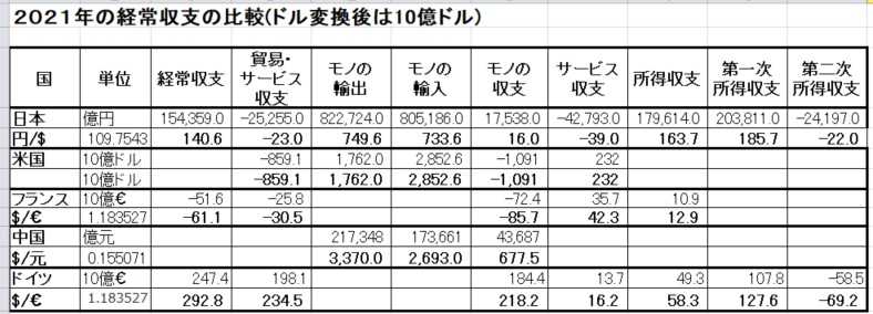 5.これまでに掲載した国々の「貿易収支」、「経常収支」​​​​​​など