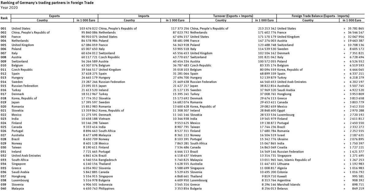 米国は500億€、英国は333億€の貿易黒字であるが、