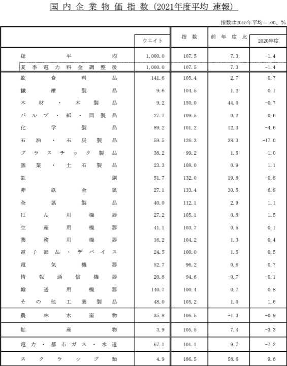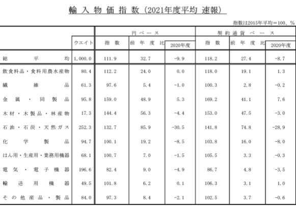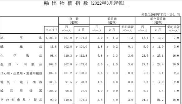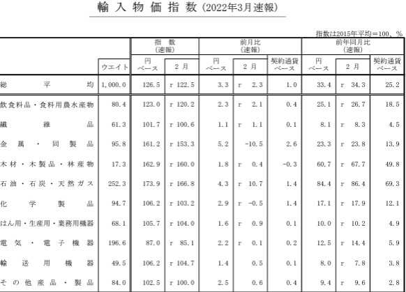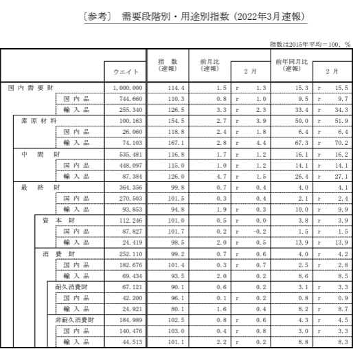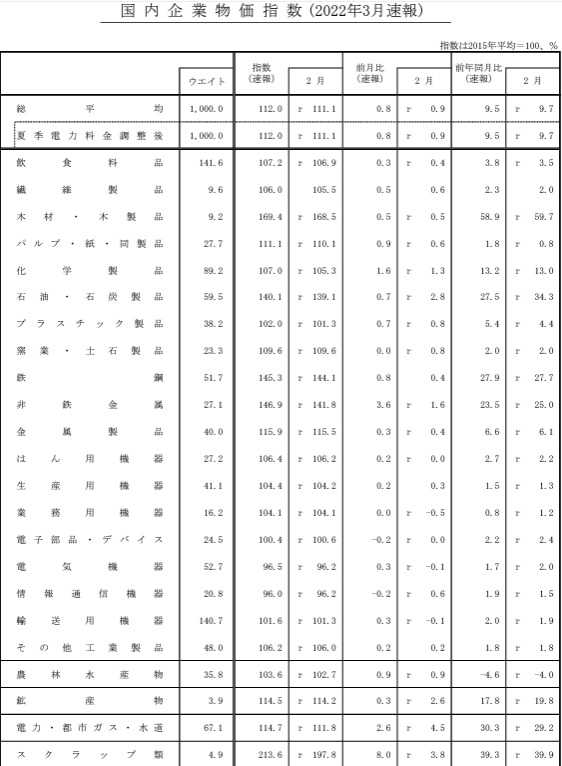 ​​​​​​​​​ 日本銀行が2022年3月の企業物価指数の