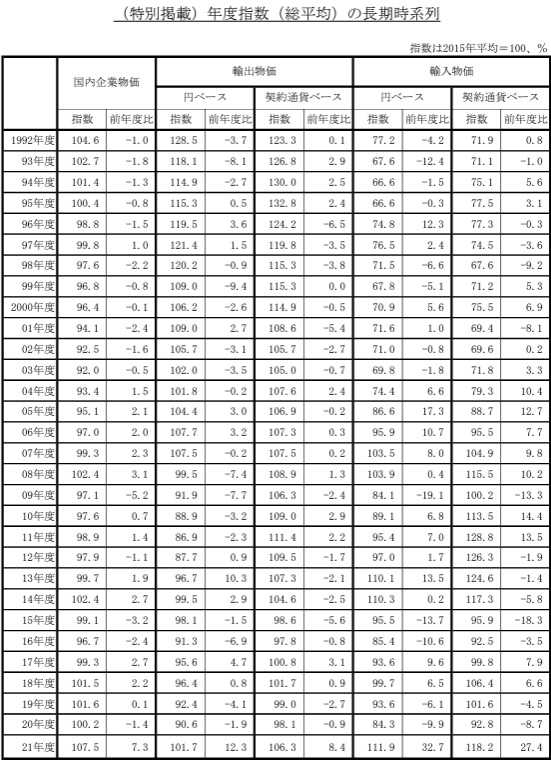 ​3.年度ベースの企業物価指数などの推移