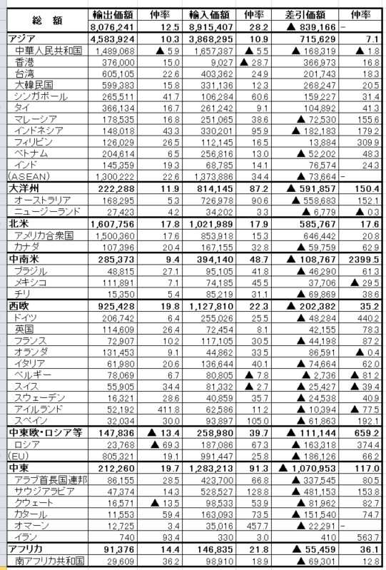 ​2.2022年月の国別の貿易(輸出・輸入)と貿易収支