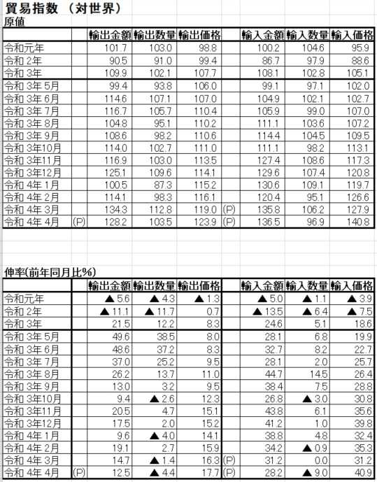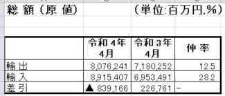 1.2022年4月の貿易(輸出・輸入)統計と収支