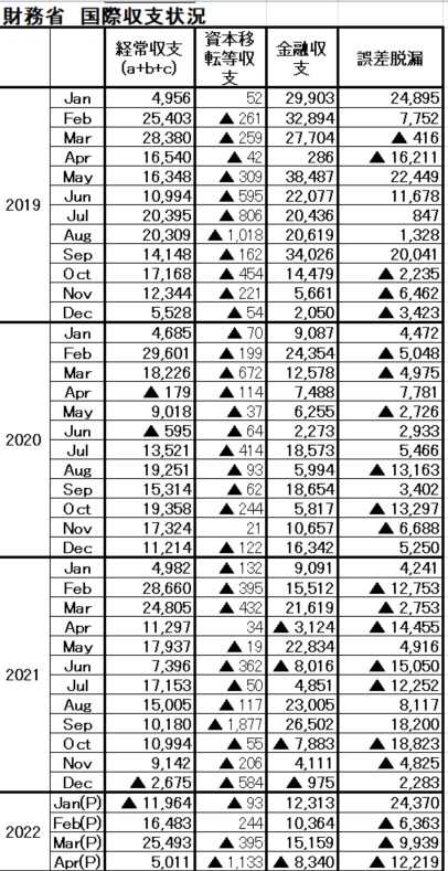 3.▲誤差脱漏=経常収支+資本移転等収支ー金融収支
