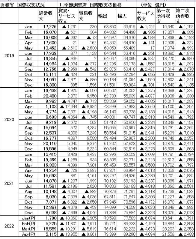1.経常収支=輸出ー輸入+サービス収支+第1・2次所得収支