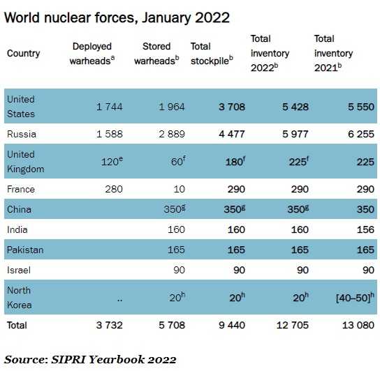 「世界の核兵器庫」​2022年鑑を2022/6/13に発表したとある。