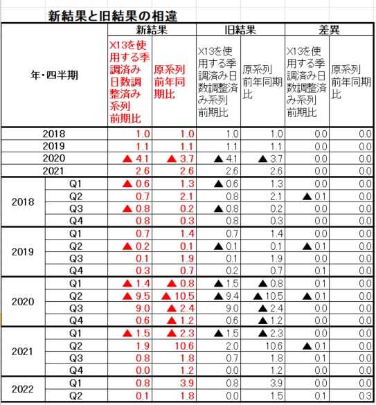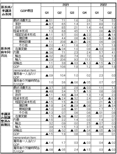 季調済み前期比と原系列前年同期比