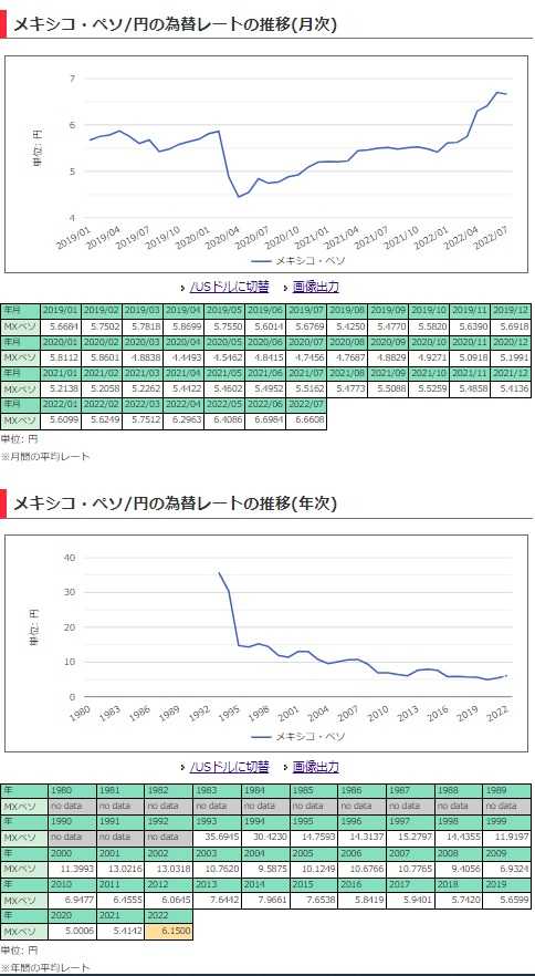 メキシコ・ペソを「日本¥」、「US$」に換算~