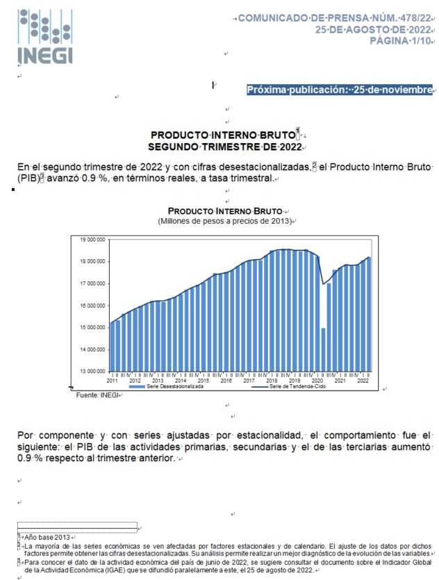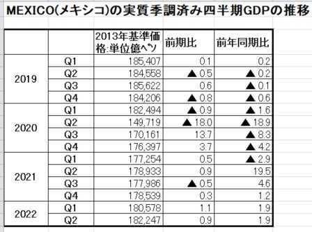 ​メキシコの2022年Q2の実質季調済み四半期GDP​