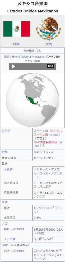日本語ではメキシコだが ​「メヒコ」​と発音する。