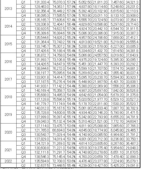 四半期実質GDPは2022年4~6月期「132兆円」​である。