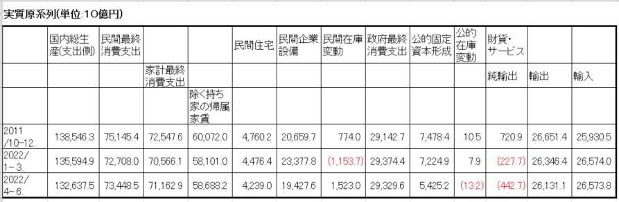 2022年Q2(=4~6月期)の「Y」(=実質GDP)は