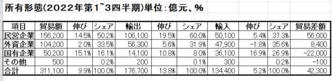 ​​3.中国の所有形態別貿易 (2022年第1~3四半期)