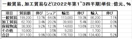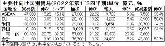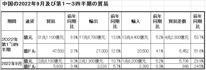 1.中国の2022年第1~3四半期(1∼9月期)と2022年9月期の貿易
