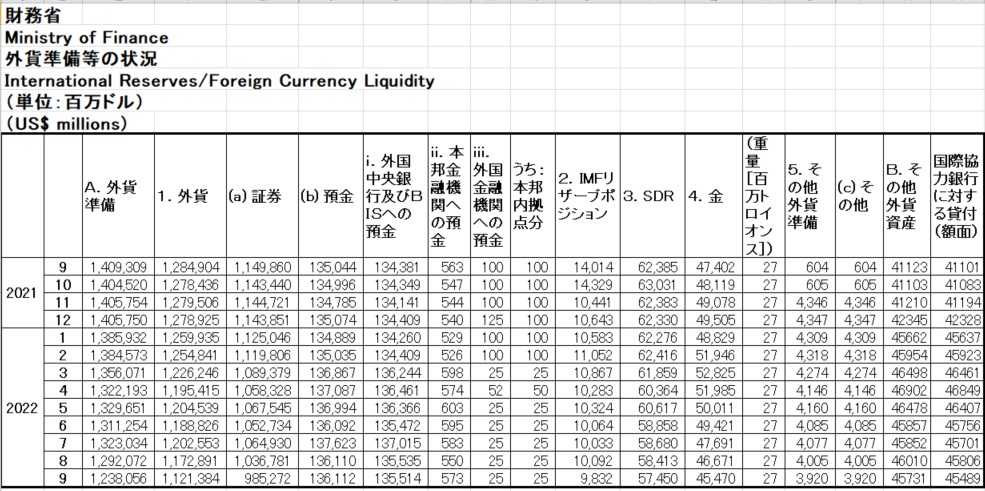 外貨準備等の状況 : 財務省 (mof.go.jp)
