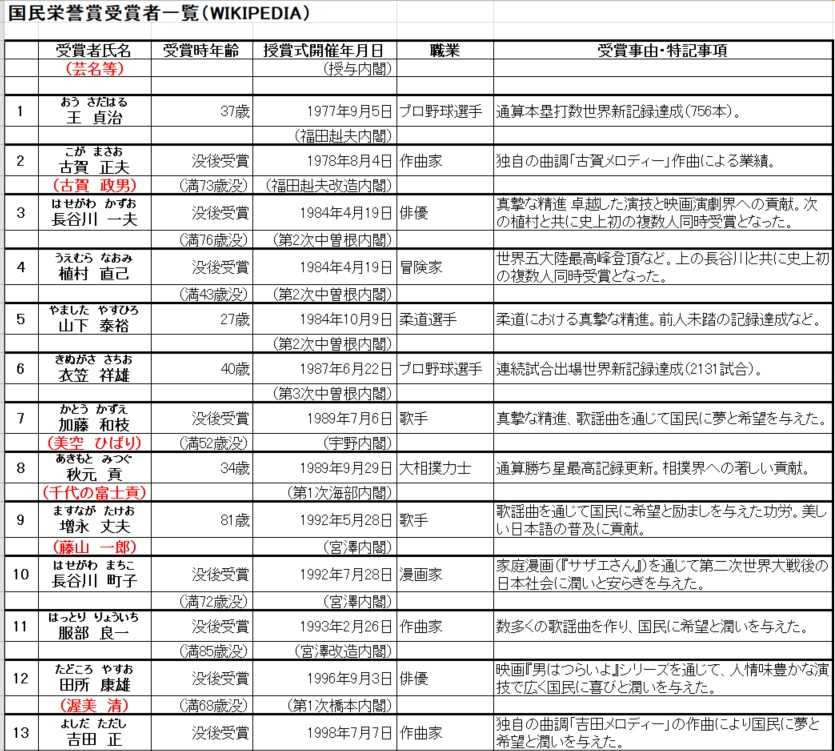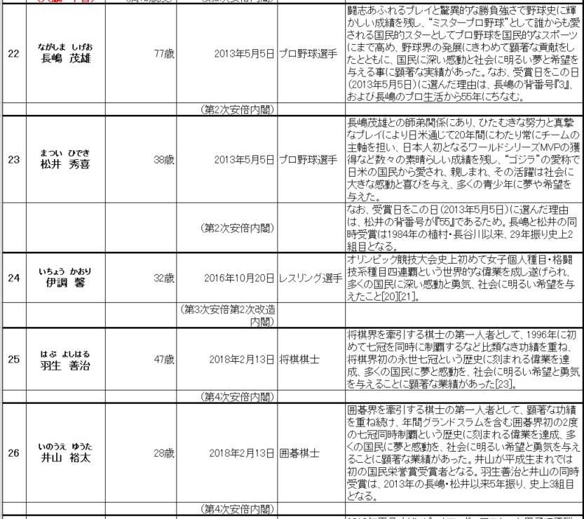 以下は「国民栄誉賞の伝達式」のない状態が続く中での