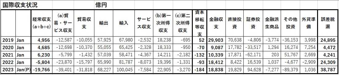 国際収支2023年1月も真っ赤な赤字