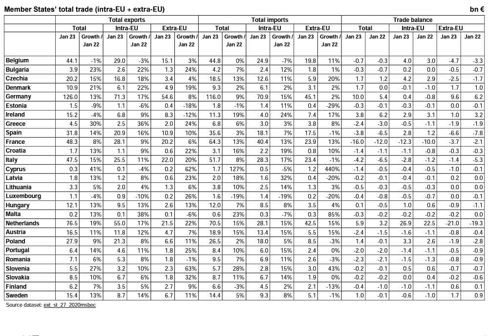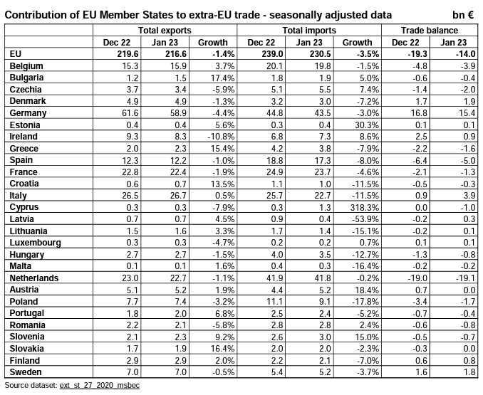 ​EUROSTATによる2023年1月の
