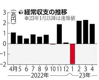 経常黒字1・8兆円…4月 エネ価格高騰落ち着く