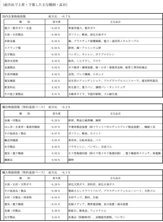 1.主要な日銀の物価統計(=PPI)の例示