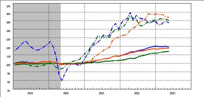 国内企業物価指数      実線  紫