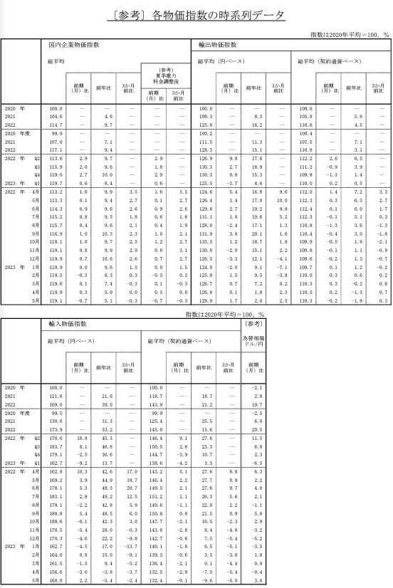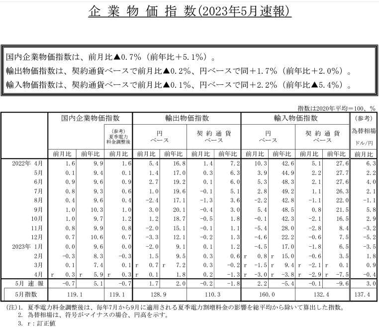 日本の2023年Ma​yのPPI(=Producer’s Price Index)