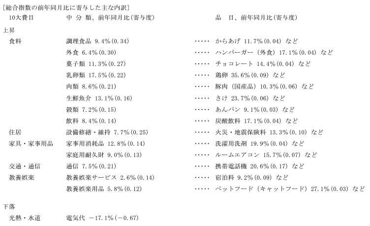 品目別では、エネルギーが、政府の補助金や燃料価格